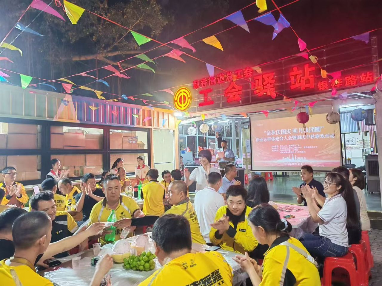 10月4日,珠海市总工会联合香洲区总工会在翠香街道工会驿站举办“金秋庆国庆明月映团圆”新业态群体建会入会暨国庆中秋联欢活动。活动通过丰富多彩的文娱互动和暖心服务富源优配,为新就业形态劳动者及其家属营造浓厚节日氛围,送上真挚的节日祝福。