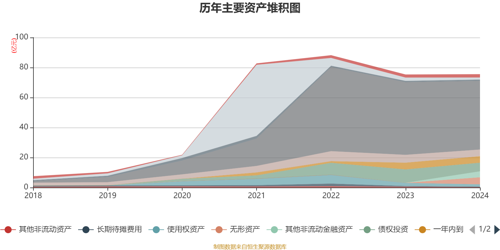 资产重大变化方面,截至2024年末,公司无形资产较上年末增加6994.14%,占公司总资产比重上升6.12个百分点;其他非流动金融资产占公司总资产的5.35%,上年末为0;债权投资较上年末减少36.11%,占公司总资产比重下降4.3个百分点;交易性金融资产合计较上年末减少5.42%,占公司总资产比重下降3.67个百分点。