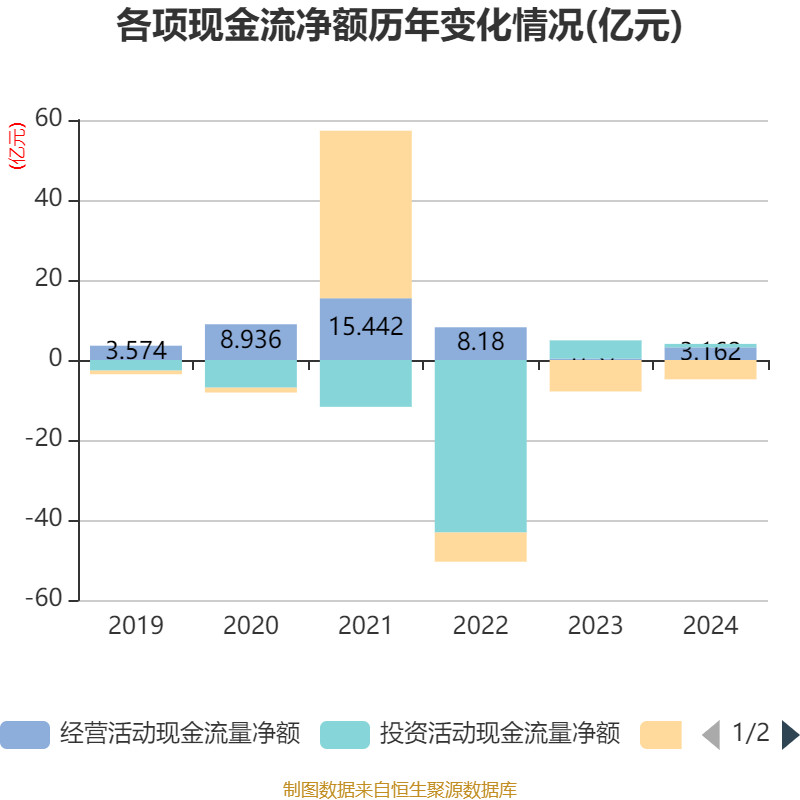 截至2024年易融资,公司经营活动现金流净额为3.16亿元,同比增长755.27%;筹资活动现金流净额-4.83亿元,同比增加3.03亿元;投资活动现金流净额8633.55万元,上年同期为4.54亿元。
