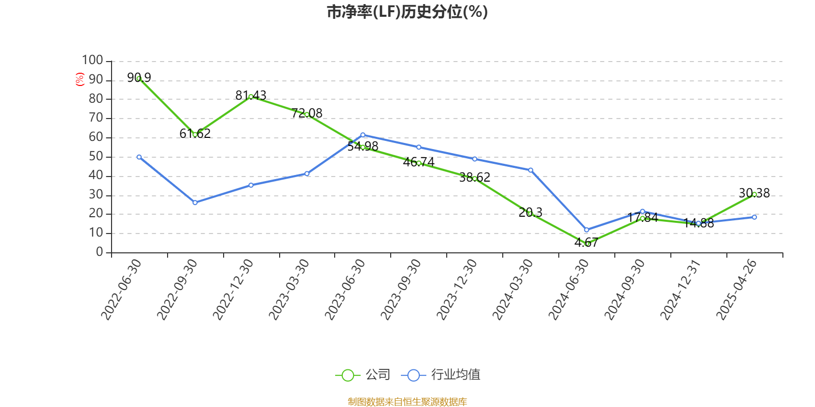 市盈率、市净率为负时易融资,不显示当期分位数,会导致折线图中断。