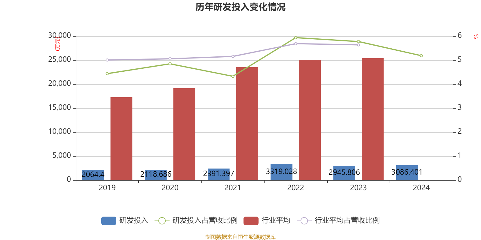2024年全年,公司研发投入金额为3086.4万元,同比增长4.77%;研发投入占营业收入比例为5.18%,相比上年同期下降0.59个百分点。此外本财配资,公司全年研发投入资本化率为0%。