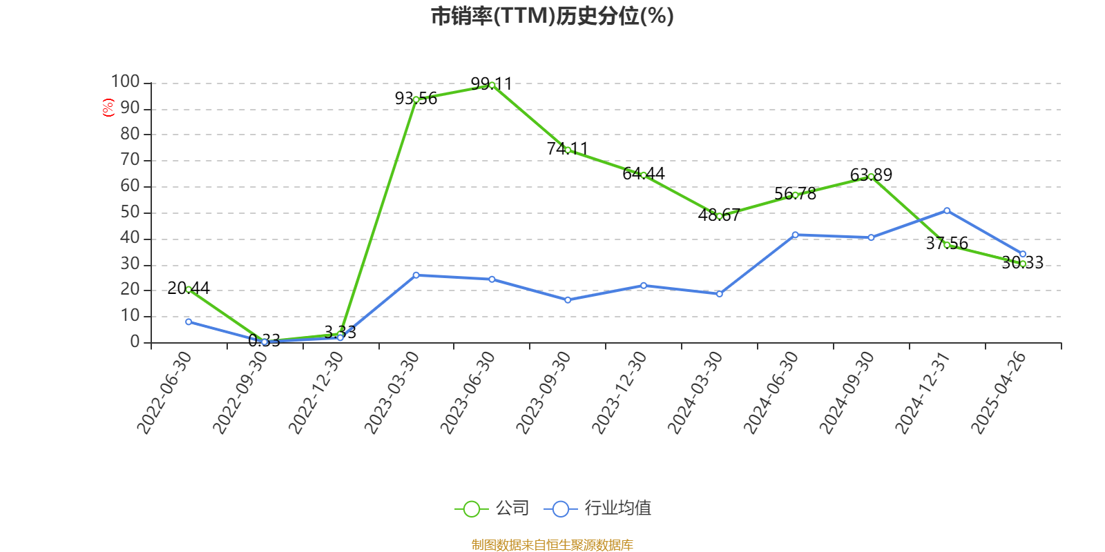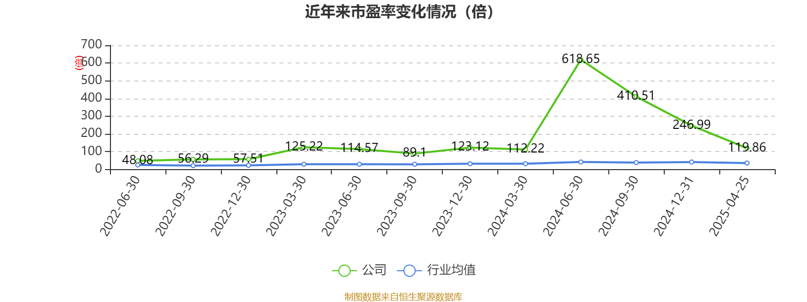 以4月25日收盘价计算,本川智能目前市盈率(TTM)约为119.86倍,市净率(LF)约2.87倍,市销率(TTM)约4.77倍。