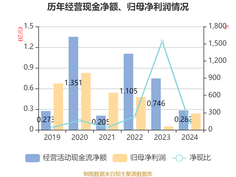 中证智能财讯本川智能(300964)4月26日披露2024年年度报告。2024年,公司实现营业总收入5.96亿元,同比增长16.67%;归母净利润2373.96万元,同比增长391.81%;扣非净利润1697.04万元,同比扭亏;经营活动产生的现金流量净额为2818.46万元,同比下降62.22%;报告期内,本川智能基本每股收益为0.3072元,加权平均净资产收益率为2.35%。公司2024年度分配预案为:拟向全体股东每10股派现1元(含税)。